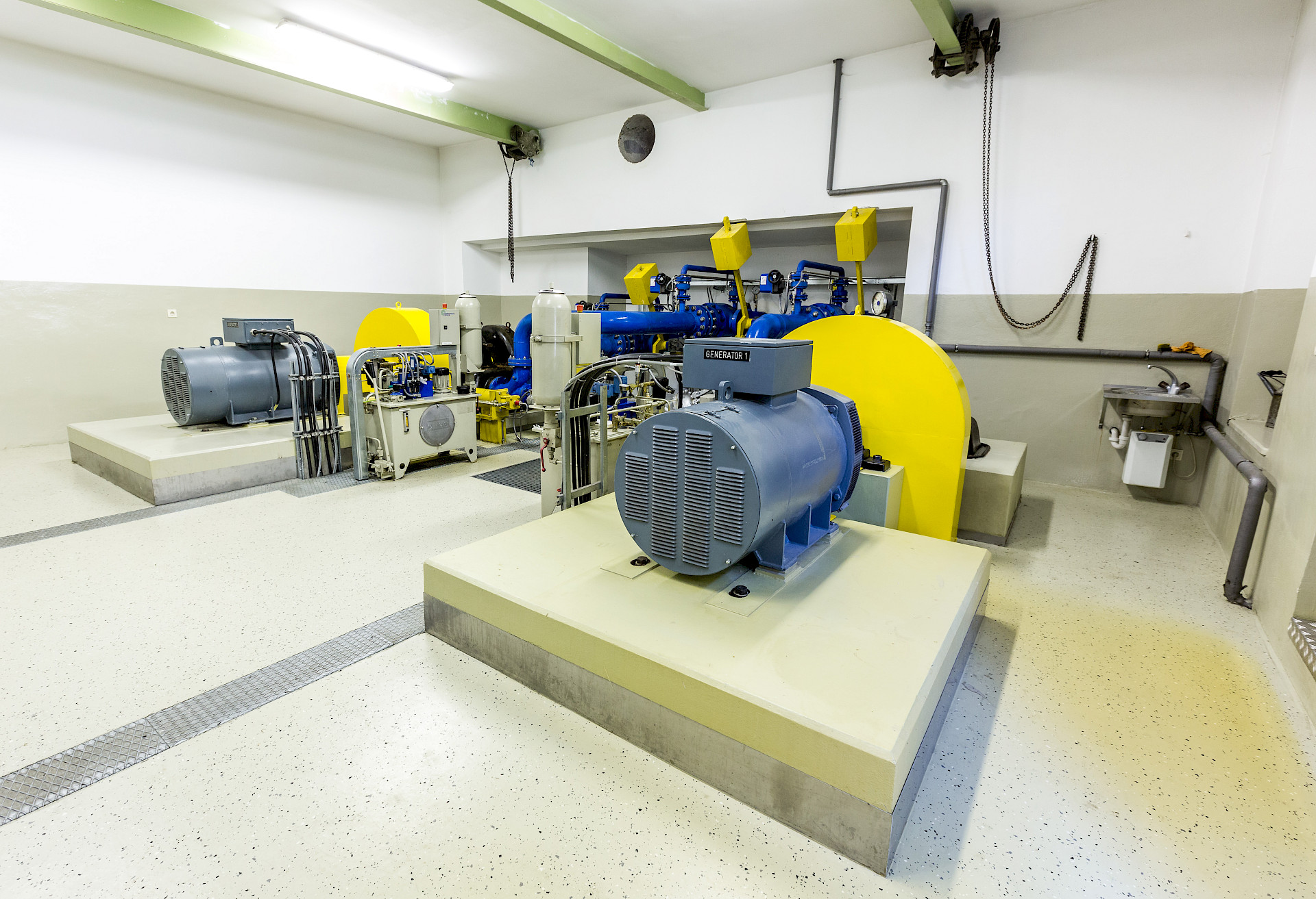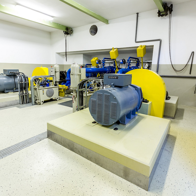 - Generator I: 1 eindüsige Pelton-Turbine mit horizontaler Welle