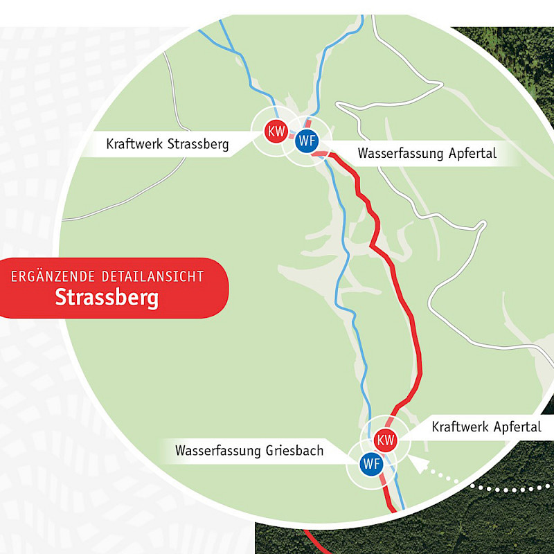 Das KW Strassberg ist das erste in der Reihe von vier Kraftwerken, die Wasser aus dem Telfer Griesbach abarbeiten. Zusätzlich wird es vom Alplbach und mehreren Quellen gespeist.